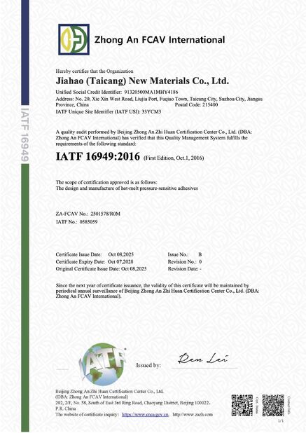Estándar:IATF 16949:2016 Número:0585059 Fecha de emisión:2025-10-08 Fecha de expiración:2028-10-07